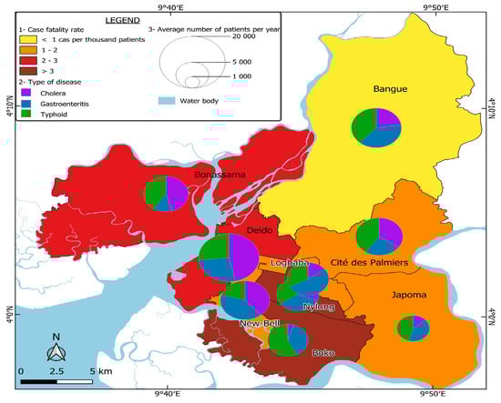 Based on field observations and surveys, most of the neighborhoods with a high need for healthcare, particularly for diseases related to poor hygiene, are in the Boko, Bonassama, and Bangue health districts. These districts are characterized by a dominance of informal settlements, where limited access to sanitation facilities, non-potable water, and overcrowding contribute to the spread of environmental diseases such as cholera, gastroenteritis, and typhoid.