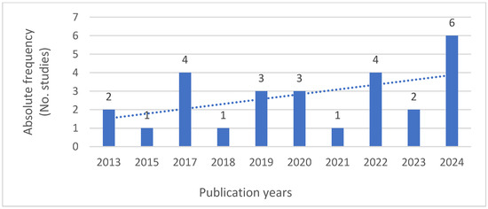 Absolute frequency for publication year of included studies.