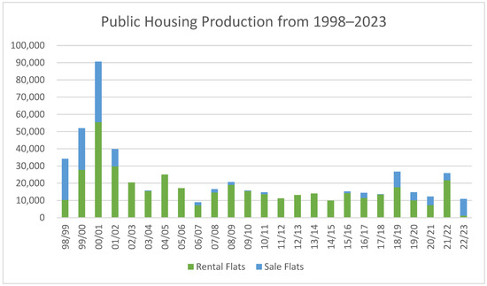 Public housing production from 1999 to 2023. Sources: Housing Authority [73], Housing Authority [74].