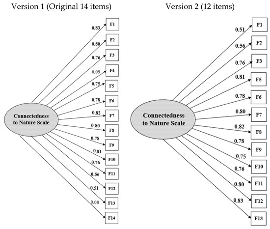 When compared with the French version [52], difficulties of fit were also found with items 4 and 14 (although in the latter, this situation was also identified with item 12); however, it also reports a unifactorial structure, adequate internal consistency (α = 0.85), although higher in the Colombian version) and convergent validity with the Environmental Identity Scale. On the other hand, the Italian version [39] retains the original 14 items and also has a high internal consistency (α = 0.89). It is important to highlight that in this study, an analysis of invariance by sex and by origin (urban/rural) was incorporated, an aspect that was not evident in any other of the studies reviewed, which made it possible to evaluate the stability of the test as a function of these dichotomous variables.