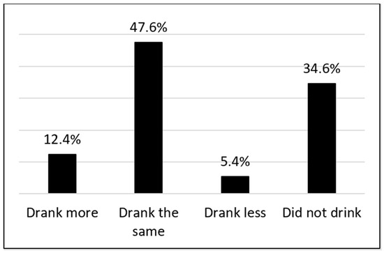 However, many respondents’ drinking did not change compared to before the pandemic, and a minority of our sample (5.3%) reduced their drinking. Similar mixed changes in alcohol use, including reductions in drinking, have been reported in the literature [15,18,19,45]. Understanding the rationale to reduce drinking may support novel health promotion interventions during similar large-scale crises. Unfortunately, the survey did not assess respondents’ drinking motivations or personality traits that might be associated with unhealthy coping (e.g., sensation seeking). Thus, we are limited in how much we can explain the changes in alcohol use in our sample.