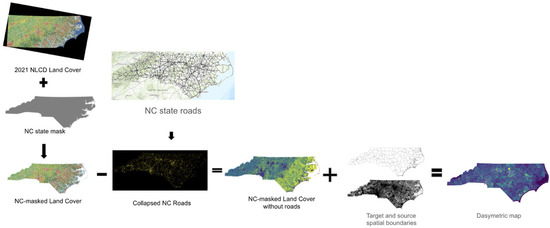 Example of dasymetric mapping process as illustrated for North Carolina USA.