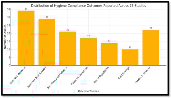Thematic synthesis was conducted in two stages. First, findings were grouped according to recurring themes, such as vendor hygiene, regulatory environments, barriers to compliance, and customer perception. Then, using the HBM, studies were analyzed to assess how perceptions (susceptibility, severity, benefits, barriers, cues to action, and self-efficacy) shaped vendor behaviours [,,]. In parallel, the BSC framework guided the mapping of business outcomes along financial, customer, internal process, and learning/growth dimensions []. The initial codebook was developed inductively through the line-by-line coding of five diverse studies, followed by iterative refinement. Two reviewers independently applied codes to each study, and discrepancies were resolved through discussion or arbitration by a third reviewer. All qualitative coding was managed using ATLAS. ti software (v.24) to support traceability and thematic saturation. Key data were extracted into a structured matrix capturing the author(s), year, and country of study; type of study (empirical, theoretical, policy-based); focus area (e.g., hygiene practices, regulatory enforcement, vendor performance); conceptual framework (if any), and key findings related to compliance and business outcomes. Manual analysis and use of Atlas Ti were used to extract word clouds []. Given the diverse study designs, outcomes, and reporting formats across the included literature, a meta-analysis was not feasible. Instead, a narrative synthesis was conducted using vote-counting to identify the frequency of findings linking hygiene compliance to business performance.