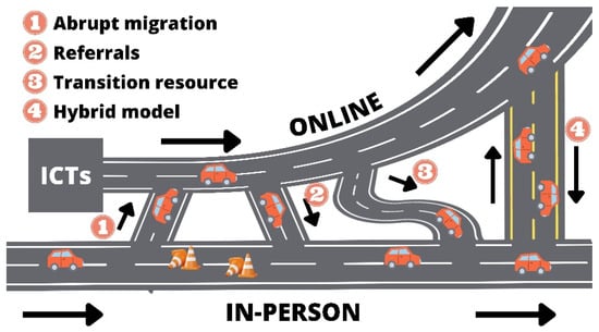 This regulatory flexibility led to a sharp increase in professional registrations: over 39,000 new e-Psi registrations were recorded in just one month at the beginning of the pandemic—surpassing the total from the previous 15 months []. These numbers reflect the magnitude of change experienced by psychologists in adapting their practices to the pandemic context. Many professionals transitioned to online modality without any prior experience, which required a rapid reinvention of technical aspects of psychotherapy. ICT mediation demanded the swift development of new therapeutic strategies, often guided solely by the therapist’s internal clinical framework, to establish new forms of connection under radically altered conditions of encounter [].