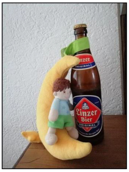 “On the one hand, he’s often like a baby, but on the other hand, he’s often like a grown man. So baby toy, baby, the beer bottle, adult.”(Mrs. Riegler, 56)
