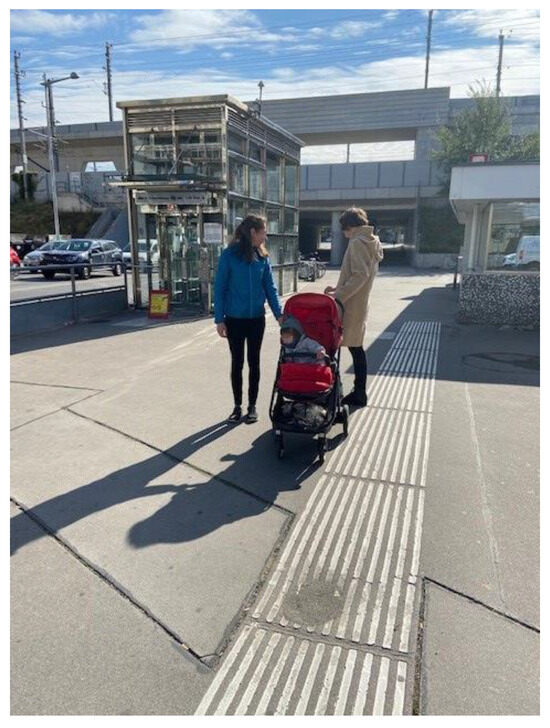 While strangers in public often stare shamelessly, other parts of society tend to overlook the challenges faced by parents and their children. Politics, the labor market, architecture, and transportation often fail to adequately consider the situations of caregiving families. Architectural barriers and a lack of awareness regarding spatial obstacles for people with disabilities in public spaces further exacerbate the daily struggles of caregiving parents. Mrs. Schneider recounted an experience she had on public transportation, namely that the elevator to the train platform was not working, which is supposed to be indicated by the small yellow sign in front of the elevator door(Figure 11):