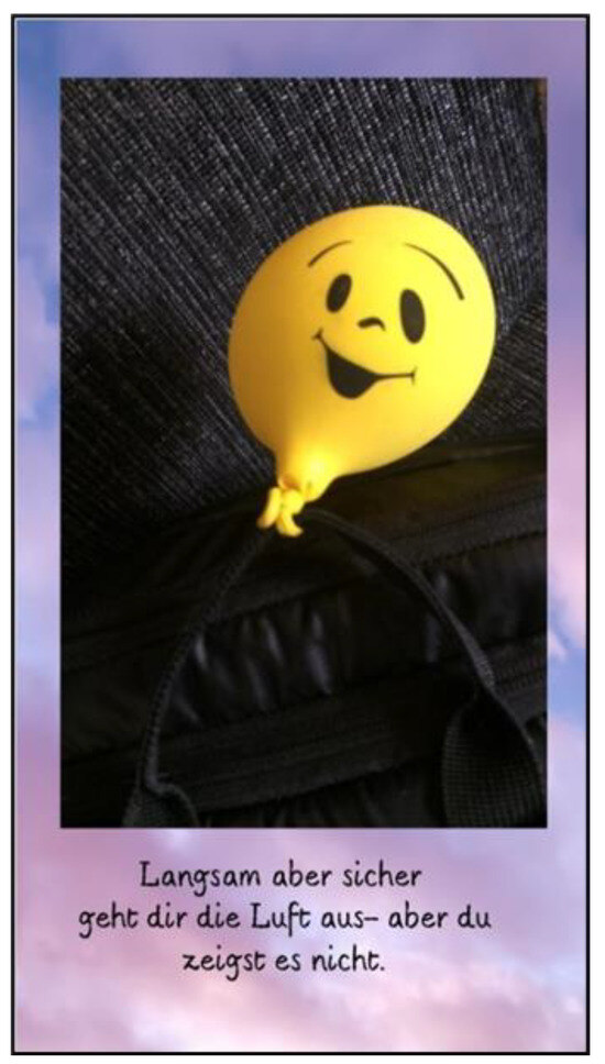 2. Data collection: Participants received training on procedures, technical aspects, ethical principles, and data protection during two online meetings [19]. During a two-week photo phase, parents captured 10–15 photographs of their caregiving responsibilities using smartphones or disposable cameras. To guide participants and clarify the project objectives, we provided stimulating statements [18] as shown here:
