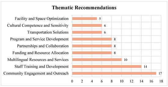 In the United States, public libraries provide vital services to refugees and asylum seekers through children’s programs, literacy initiatives, and digital learning opportunities [11]. Libraries can monitor local immigration demographics [27], offer culturally sensitive services, support English language development, and build connections with local organizations [28,29]. Despite these efforts, significant gaps persist in meeting refugees’ information needs. Research on Hispanic/Latino [30] and Chinese [31] communities provide some insights, but exploration of other refugee groups remains limited. Challenges include insufficient multilingual resources, inadequate staff training, and difficulties with outreach.