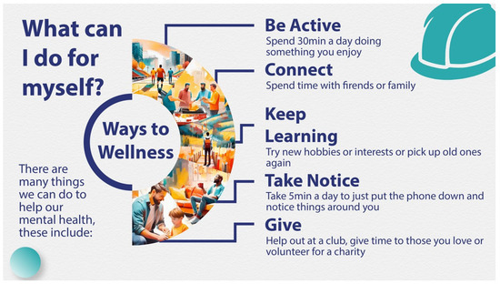 - Roche, E.; O’Donnell, S.; Richardson, N. “You Have to Make It Normal, That’s What We Do”: Construction Managers’ Experiences of Help-Offering. Environ. Res. Public Health 2025, 22, 581. [Google Scholar] [CrossRef]