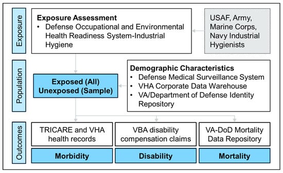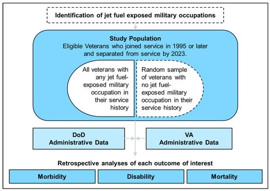 By analyzing longitudinal service histories, the study will examine health outcomes associated with varying durations of occupational jet fuel exposure. This approach will facilitate the observation of cumulative effects and dose–response relationships, a substantial gap in the current literature [31]. This retrospective cohort design is especially effective for studying chronic diseases of all body systems and conditions with long latency periods, offering a resource- and time-efficient approach to measuring long-term health outcomes.