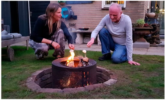 - Fundamental personal involvement, i.e., everyone involved was considered as a whole person, not merely on the basis of their (familiar) professional role or responsibility. Involvement from human to human, beyond formal divisions, fosters potential for new (inter)personal insights, developments, and challenges [,]. Therefore, we were attentive to everyone’s personal preferences, strengths, and weaknesses, for example by personalizing the research meetings and activities, and also by showing ongoing interest in personal issues and experiences.