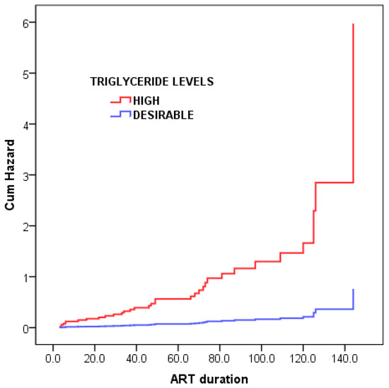 Studies have shown that high levels of triglyceride contribute to the thickening of the artery walls (arteriosclerosis), resulting in increased risk of hypertension, stroke, heart attack, and other cardiovascular diseases. In the present study, we expanded our comparison to include findings from similar African cohorts, particularly those conducted in rural and peri-urban populations in East and Southern Africa. Our findings align with previous studies from East Africa, such as research from rural Uganda and Kenya, which reported comparable rates of hypertension among PLWH, underscoring the growing burden of non-communicable diseases (NCDs) in these traditionally underserved settings [38,39]. Similarly, data from rural South Africa have highlighted a rising prevalence of hypertension in HIV-positive populations, driven by a combination of long-term ART exposure, aging, and the increasing prevalence of traditional risk factors such as obesity and dyslipidemia [40]. Most patients in this study were either obese or overweight, consistent with findings by [40] that weight reduction through dietary interventions improves BMI and enhances glucose and lipid metabolism, including lowering triglyceride levels. This supports the recommendation for weight loss to reduce excess calories that contribute to elevated triglycerides [41]. Furthermore, most of the patients in this study who had high blood pressure were drinking alcohol; however, this was not statistically significant. While alcohol was not significantly associated with the outcome in our analysis, this finding should be interpreted with caution and does not preclude a possible association in larger or more diverse populations. The latter is high in calories and sugar, and previous studies have demonstrated that regular consumption of alcohol had a potent effect on levels of triglycerides [42]. It is evident from this study that traditional risk factors (not HIV- and ART-related factors) were key players in the development of hypertension among HIV-infected patients on chronic medication; therefore, policies on healthy eating habits should be promoted. The use of healthier fats such as fat found in plants, vegetables, and fish, which are high in omega-3, should be recommended. Regular exercise along with reducing sugar and processed carbohydrates are additional healthy lifestyle choices that patients can make to prevent elevated blood triglyceride levels [43].