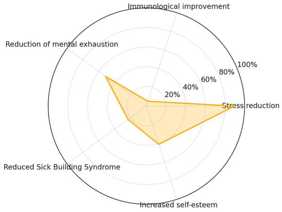 | Increased Self-Esteem 1 | Immunological Improvement 1 | Reduced Sick Building Syndrome 1 | Reduction in Mental Exhaustion 1 | Stress Reduction 1 | Augmented Creativity 2 | Greater Engagement 2 | Higher Morale and Collaboration 2 | Improved Cognitive Performance 2 | Increased Motivation 2 | Job Satisfaction 2 | Organizational Improvement 3 | Productivity Increase 3 | Reduced Absenteeism 3 | Reduced Healthcare Costs 3 | |