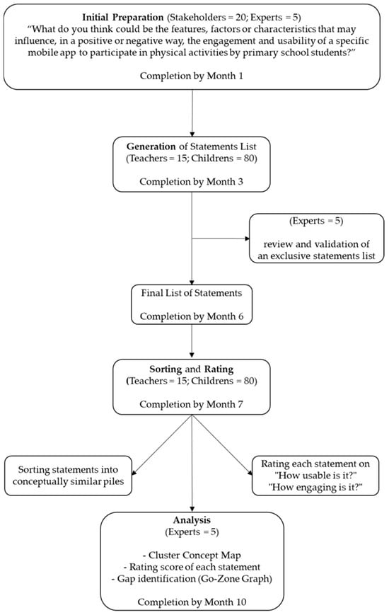 Given the increasing integration of smartphones and tablets into children’s daily routines, and the growing use of mobile applications for health promotion, it is essential to identify the features that make these tools engaging, accessible, and useful. Group concept mapping provides a structured way to achieve this by systematically incorporating the perspectives of primary school students, teachers, physical activity stakeholders, and families.