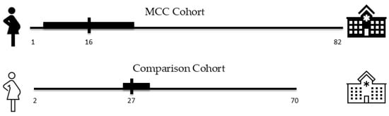 For both MCC and comparison cohorts, investigators (KW, MGH, MB, BJ, TS, or KH) extracted data on patient demographics, maternal conditions during pregnancy, delivery characteristics, and birth outcomes from the EHR. The patient’s home address as listed in the EHR was extracted to calculate distance to care. Double coding and random audits maintained the quality of abstracted data. Primary labor and delivery outcomes of interest were defined as the following: labor type (spontaneous, induced, scheduled C-section); delivery service type (obstetrics/gynecology, family medicine, or certified nurse-midwifery); delivery method (vaginal, primary C-section, or repeat C-section); epidural use among vaginal deliveries (yes/no); birth outcome (live birth, intrauterine fetal demise (IUFD)); postpartum hemorrhage (>1000 mL blood loss); gestational age at birth (preterm, defined as less than 37 completed weeks’ gestation; or term defined as 37 completed weeks’ gestation or more); birthweight (low, defined as less than 2500 g; normal, defined as 2500–3999 g; or large for gestational age, defined as 4000 g or more); Apgar scores at five minutes (0–10); neonatal intensive care unit stay (yes/no); and infant feeding status at discharge (any breastfeeding, only formula feeding, or not applicable due to IUFD/neonatal death). As this analysis comprises unique deliveries meeting inclusion criteria, a few patients delivering more than once during the years of this study may be represented multiple times in a single cohort or across MCC and comparison cohorts at different points in time. Significance was set at p < 0.05.