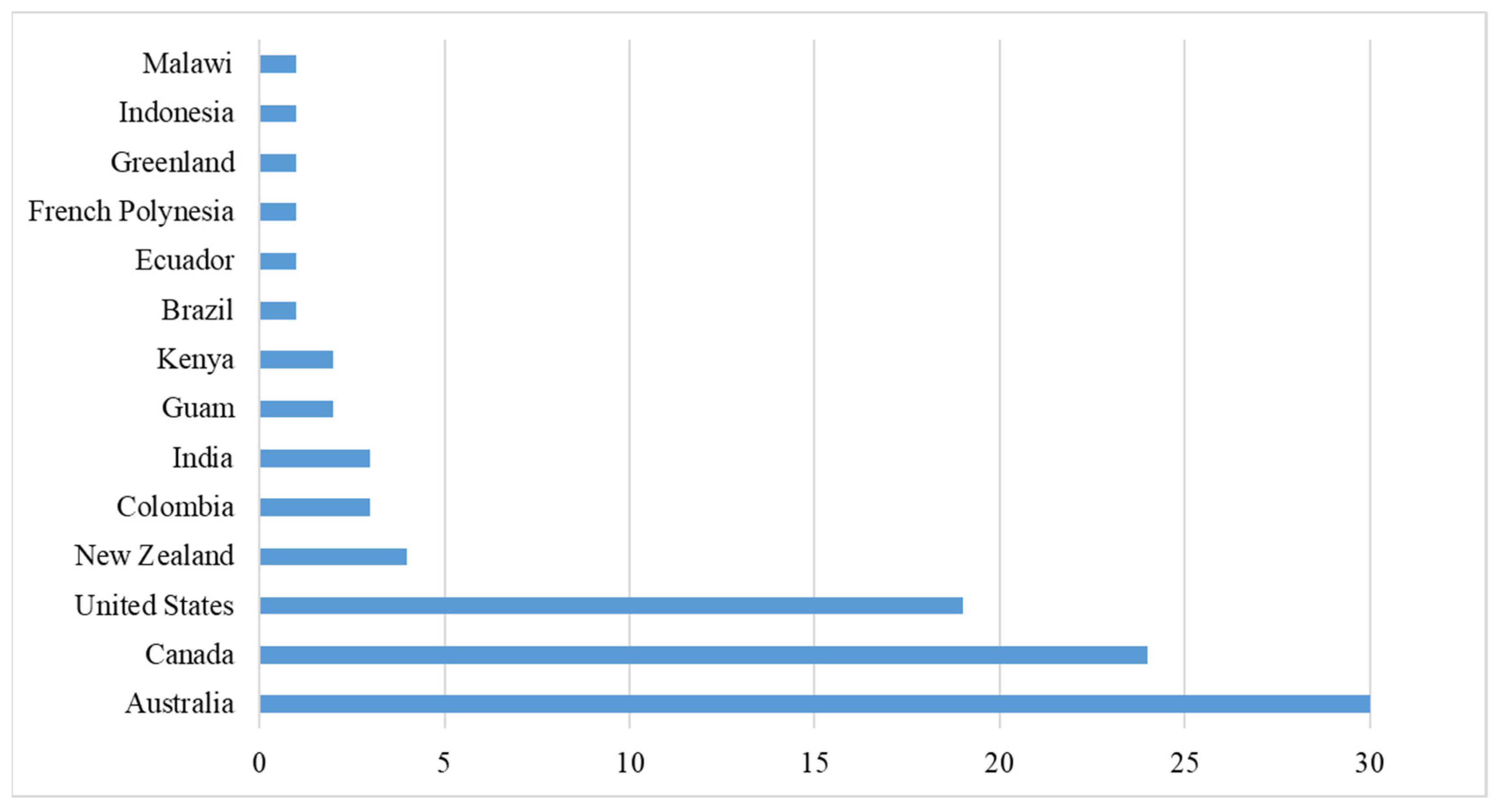 | Fluctuating prices | Australia and Greenland | × | ✓ | × | ✓ | × | [28,100,101] |