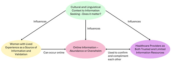 Four themes were derived from the data: cultural and linguistic context to information seeking—does it matter?; online information—abundance or overwhelm; healthcare providers as both trusted and limited information resources; and women with lived experience as a source of information and validation.
