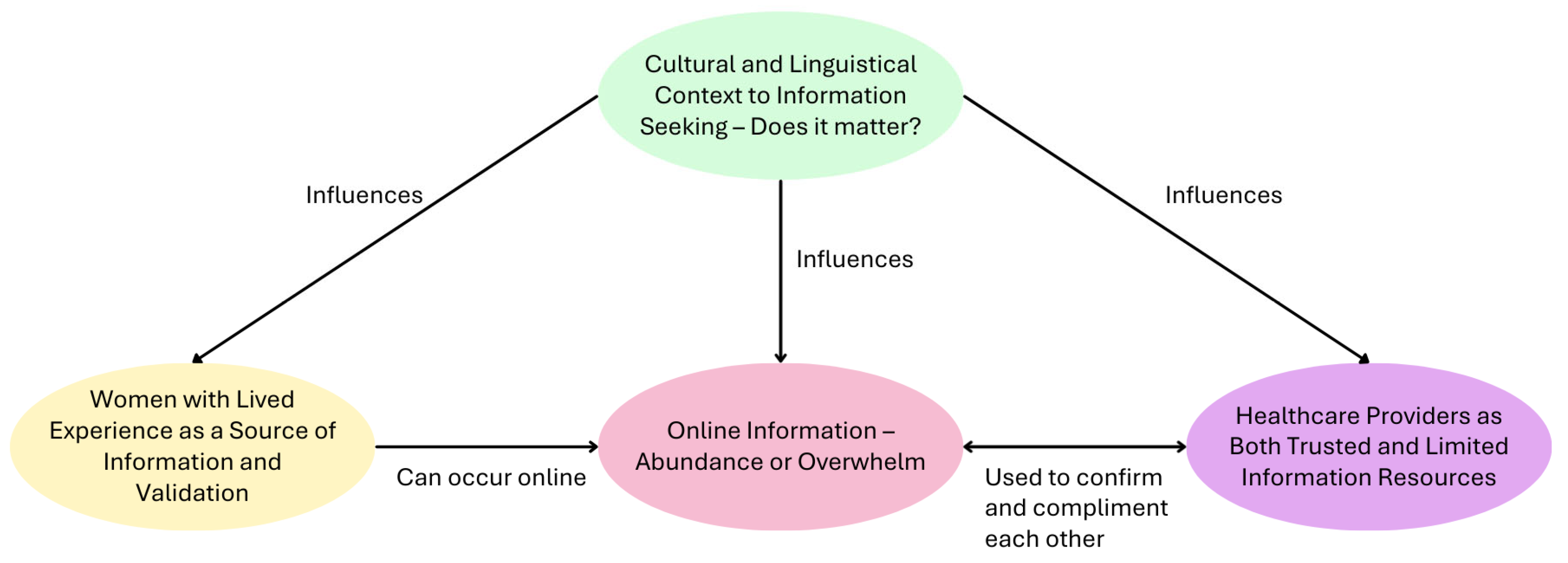 The first theme, cultural and linguistic context to information seeking—does it matter?, is central to understanding whether and how women’s cultural and linguistic backgrounds shape their information-seeking behaviours. It provides the context for the subsequent themes, which focus on specific information resources.