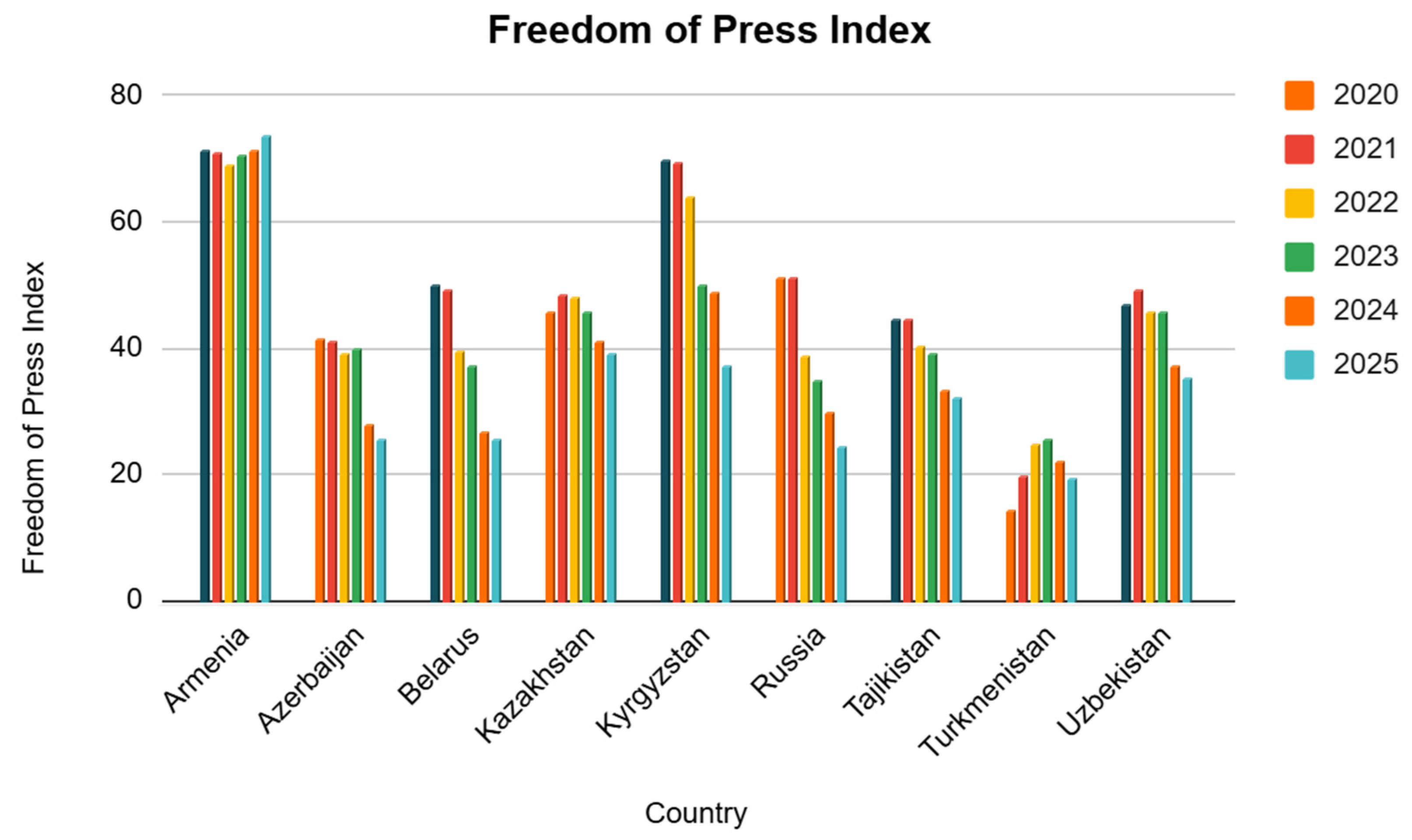 - Reporters without Borders. Freedom of Press Index; Reporters Without Borders: Paris, France, 2025; Available online: https://rsf.org/en/index?year= (accessed on 27 September 2025).