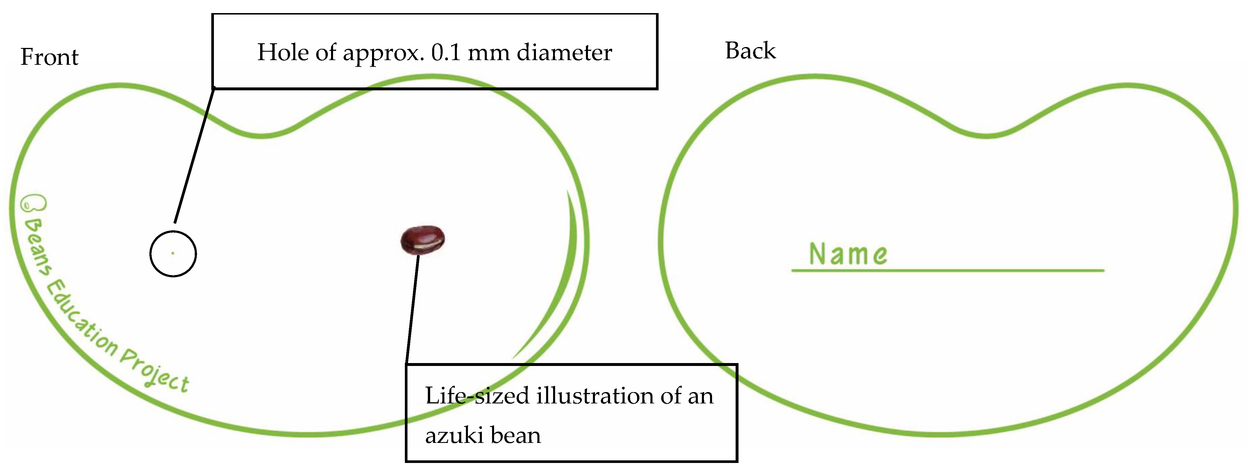 - After increasing the light in the room, please tell the students to shift their gaze to the illustration of the azuki bean next to the hole. Tell students that these beans are approximately 7.0 to 10.0 mm in length and represent a fetus at approximately 6 weeks of pregnancy. This is when a tiny heartbeat can first be detected.
