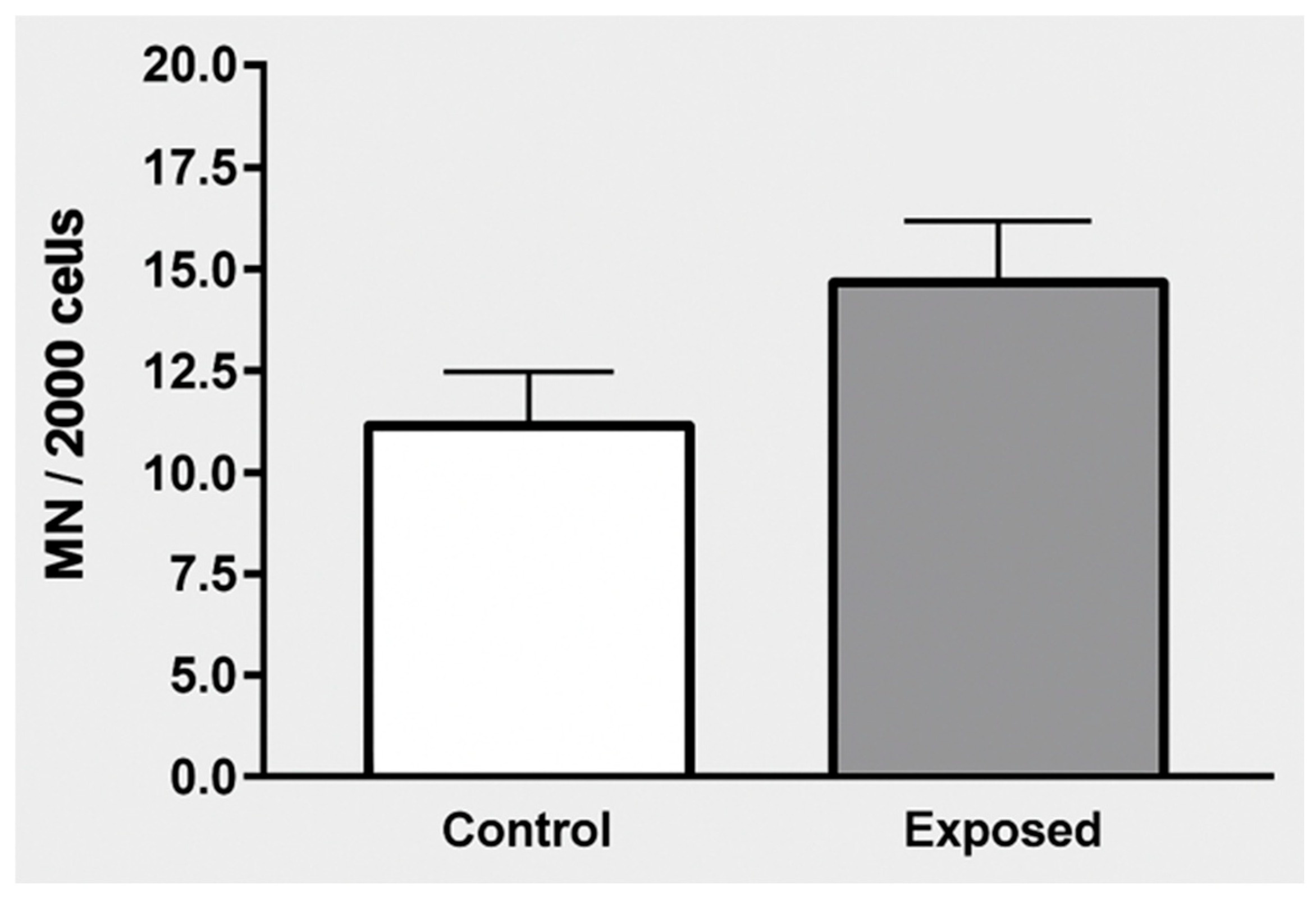 | Micronuclei—median (P25–P75) | 8 (3.3–14.8) | 9.5 (6–16) | 0.105 |