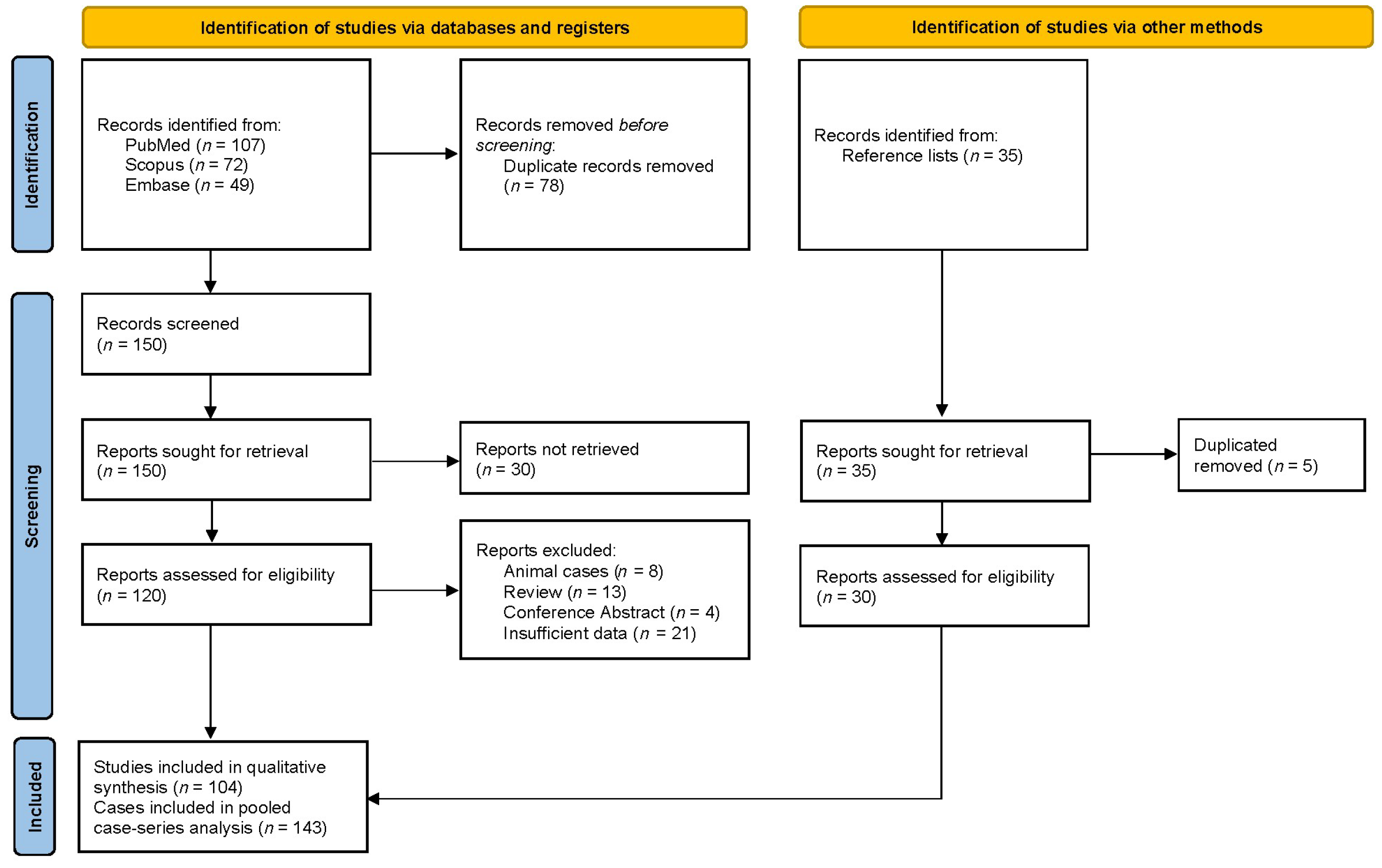 | Study Characteristics | Study type—Case reports | 97 (93.3%) |