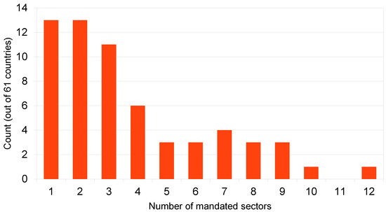 Frequency distribution of employment sector-specific COVID-19 vaccination mandates. Data source: OxCGRT [24].