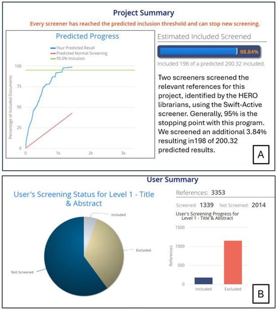 - Howard, B.E.; Phillips, J.; Tandon, A.; Maharana, A.; Elmore, R.; Mav, D.; Sedykh, A.; Thayer, K.; Merrick, B.A.; Walker, V.; et al. SWIFT-Active Screener: Accelerated Document Screening through Active Learning and Integrated Recall Estimation. Environ. Int. 2020, 138, 105623. [Google Scholar] [CrossRef]