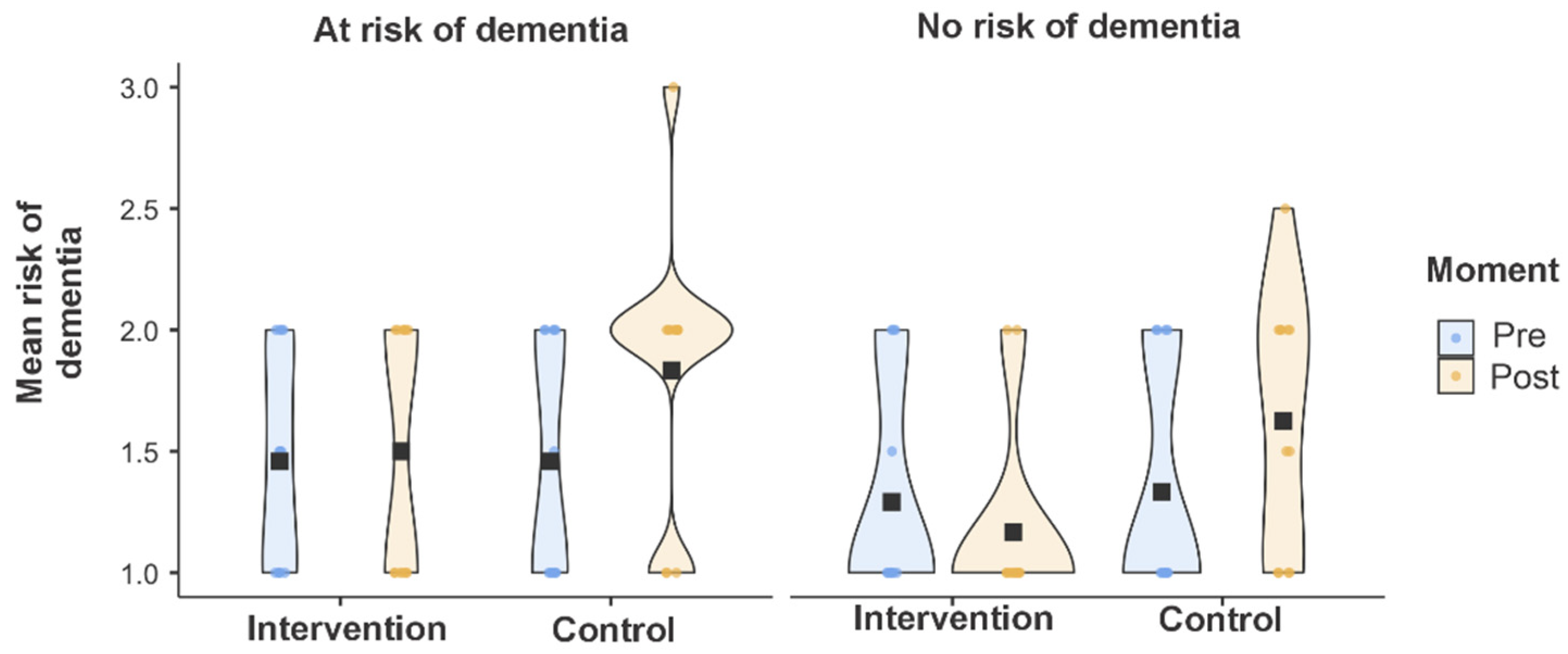 | No Dementia Risk | Intervention | 2 [1;2] * | 1 [1;2] | 2 [0;2] | 1 [1;2] |