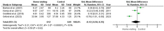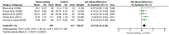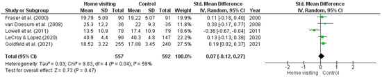 LK is a chief investigator on the MECSH, right@home and Volunteer Family Connect home visiting studies. LK was however not involved in the selection of studies included in this review. No other authors declared competing interests.