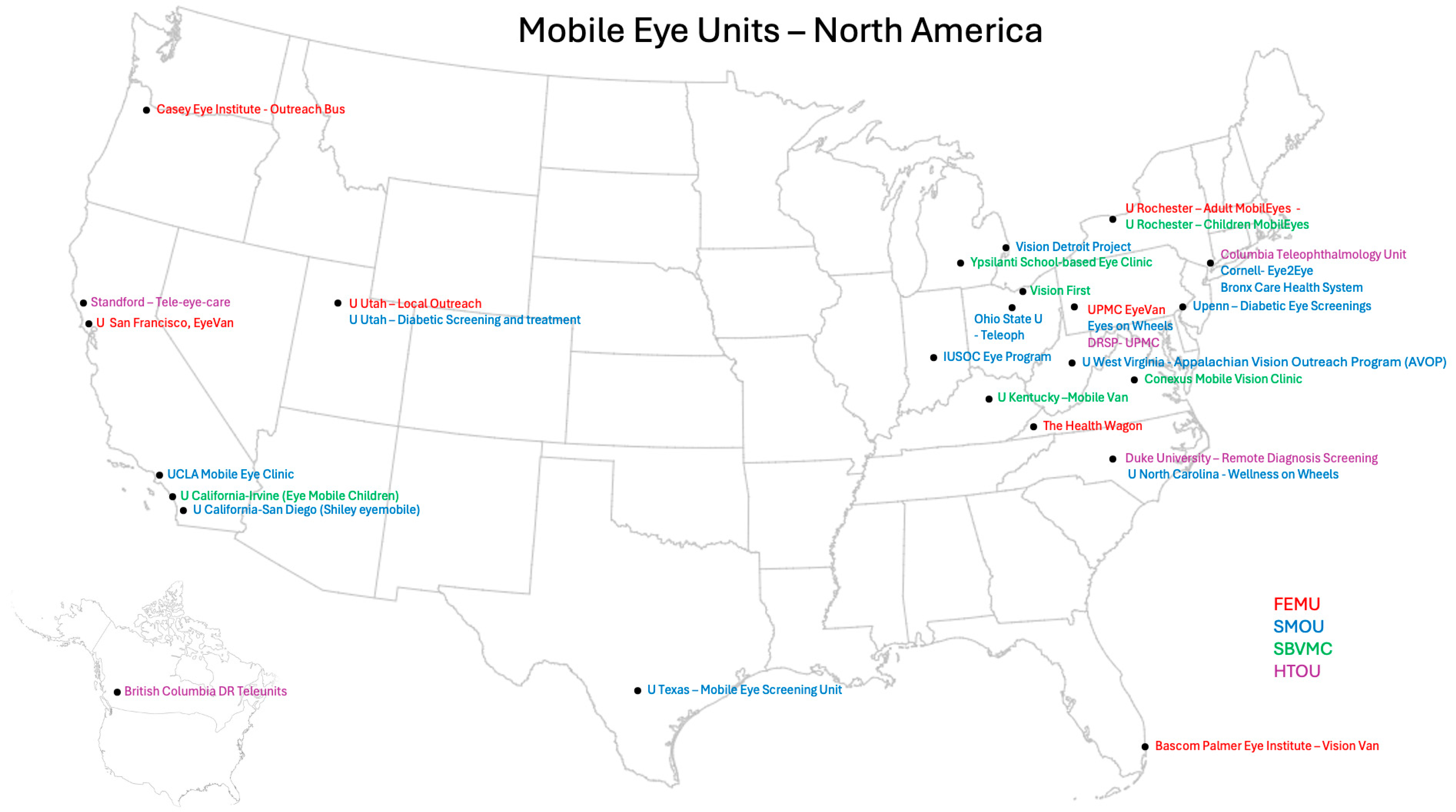 - This review provides the first structured synthesis of MEU models in North America, describing their design, capabilities, limitations, and current gaps, and offering clear guidance on where services exist and where they are absent. By mapping MEU types, summarizing strengths and constraints, and outlining future directions, this work equips public health programs, health systems, and policymakers with a practical framework to identify needs and plan mobile eye care services.