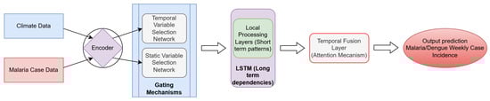 Therefore, this study addresses a critical gap in climate–disease modeling by applying the TFT framework to malaria and dengue prediction. By leveraging long-term climate datasets with high temporal resolution, we aim to demonstrate the advantages of transformer-based architectures in capturing complex climate–disease interactions and improving early warning capabilities. The results provide new insights into the relative importance of climatic variables and highlight the potential of interpretable AI approaches for vector-borne disease forecasting under changing climate conditions.