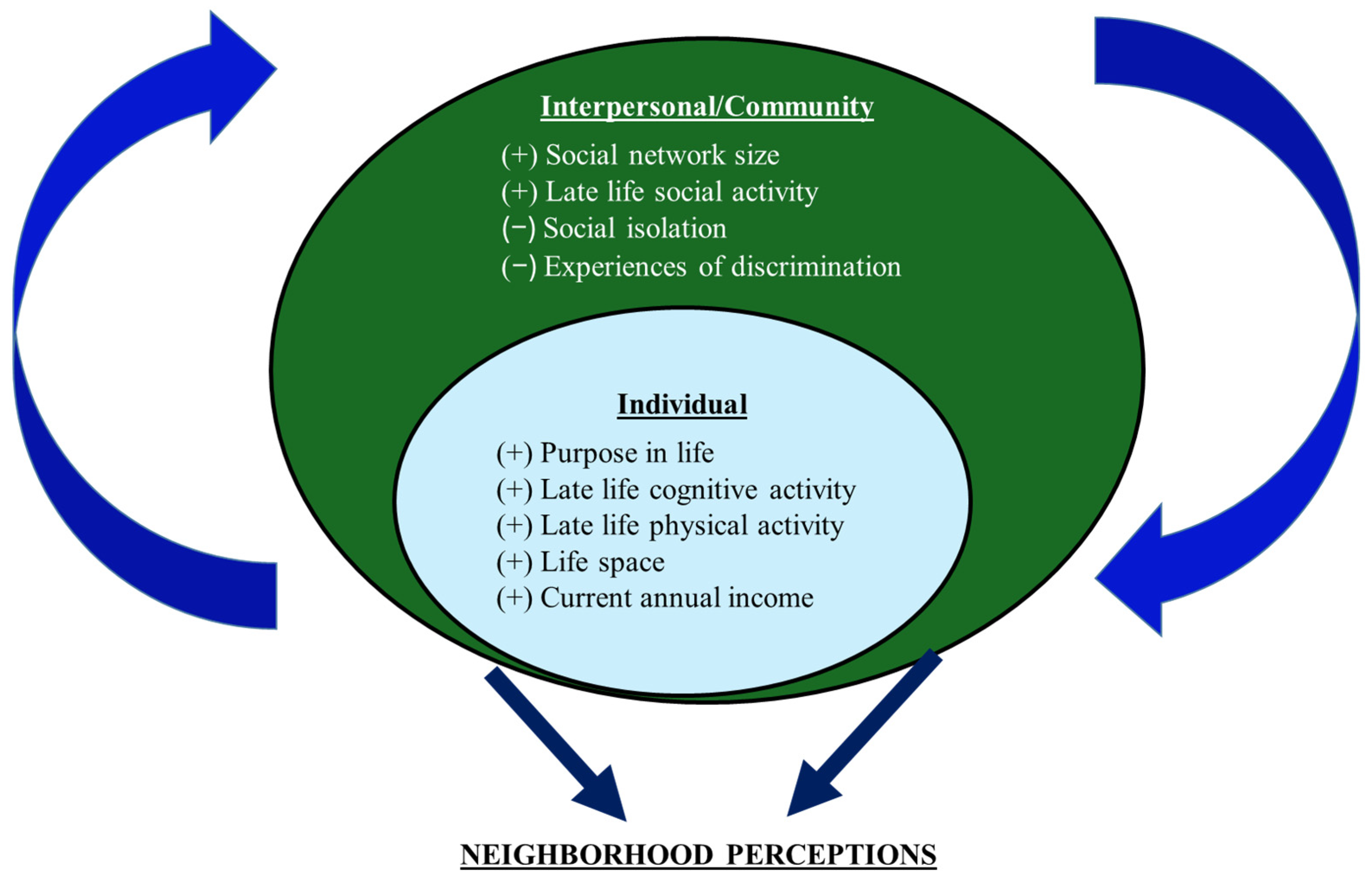- How people perceive their neighborhood environments can impact their aging trajectories, independent of objective measures.
