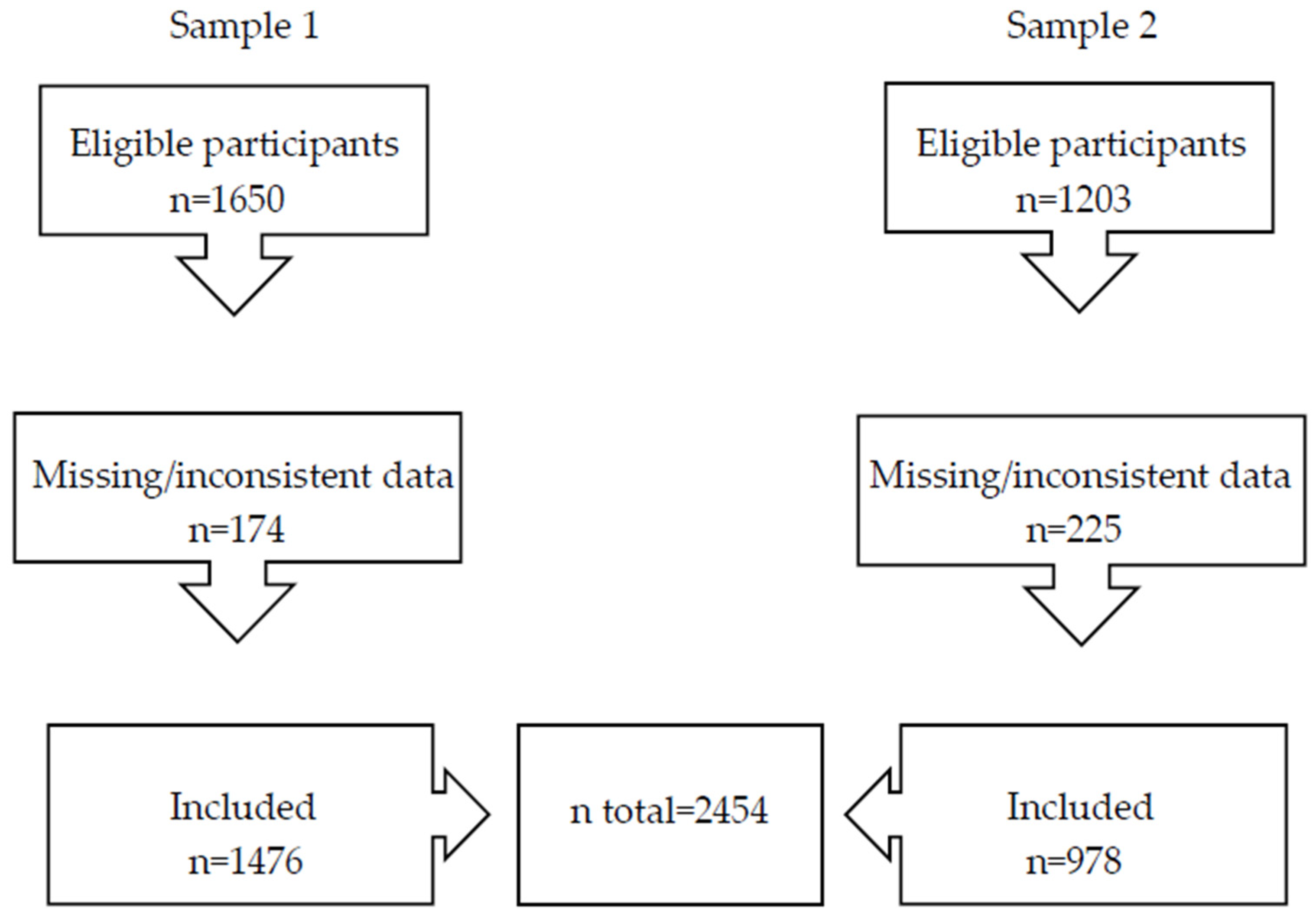 | Baseline Characteristics | Sample 1 n = 1476 | Sample 2 n = 978 | p Value |