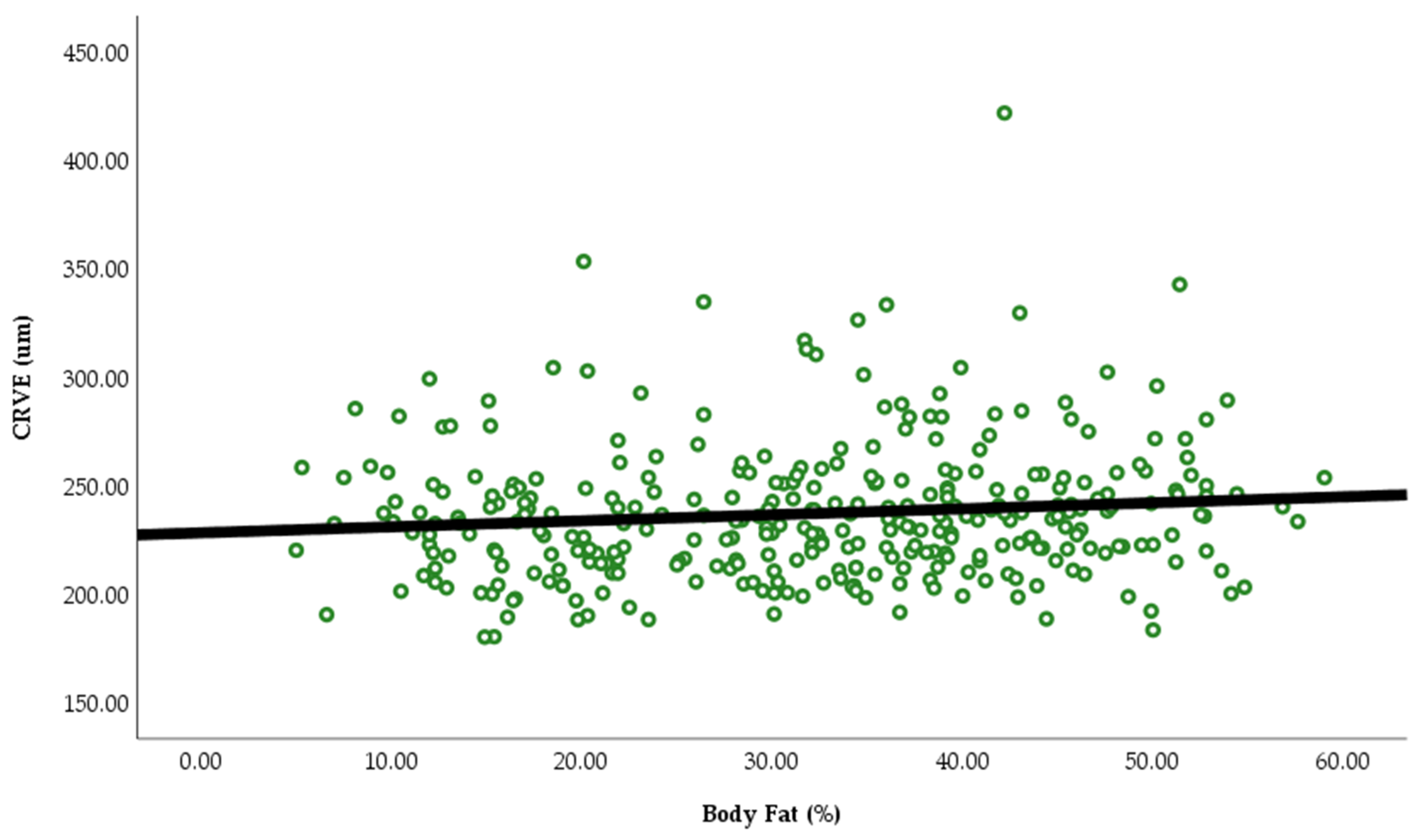 - Xiao, W.; Gong, W.; Chen, Q.; Ding, X.; Chang, B.; He, M. Association Between Body Composition and Retinal Vascular Caliber in Children and Adolescents. Investig. Ophthalmol. Vis. Sci. 2015, 56, 705–710. [Google Scholar] [CrossRef][Green Version]