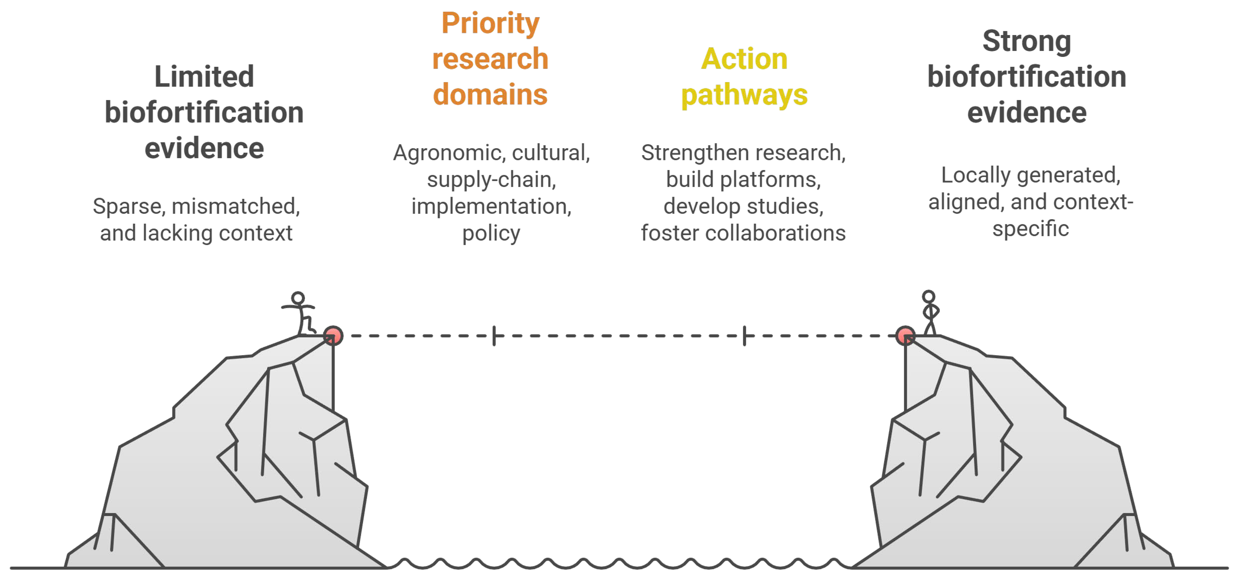 It is important to distinguish between different types of evidence relevant to biofortification. Previously, research already demonstrates the biological and nutritional efficacy of biofortified crops across diverse settings, and such efficacy data do not need to be reproduced by every country [