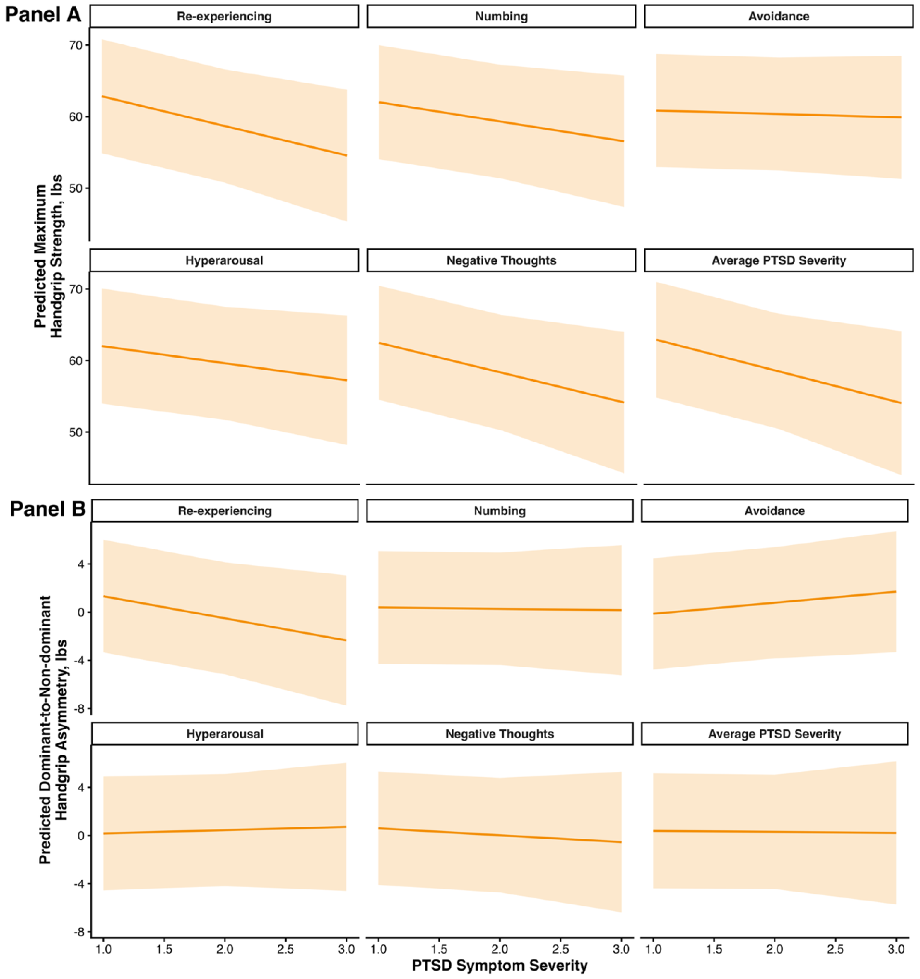 - Re-experiencing and avoidance symptoms showed the strongest associations with lower grip strength, indicating that specific PTSD symptom profiles are differentially related to long-term occupational health impairment.