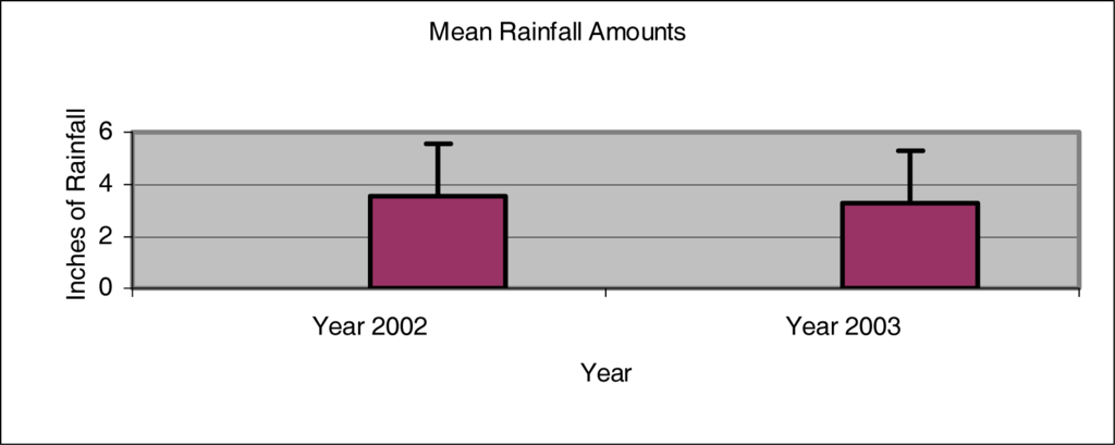 Figure 1). The year of 2003 had a slightly lower mean monthly rainfall level of 3.29 ± 1.94 inches. As shown in