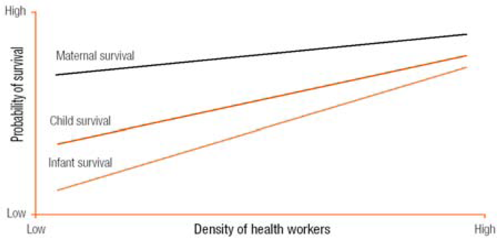 Relationship between the probability of survival and density of the health workers: “HEALTH WORKERS SAVE LIVES”Source: WHR 2006
