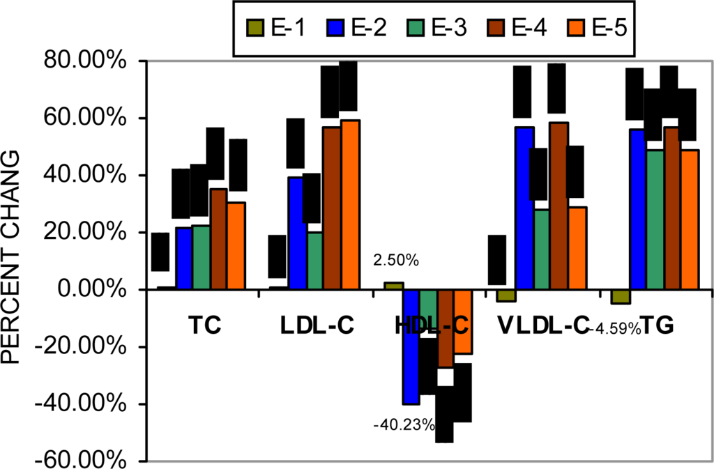 | Treatment group | Total cholesterol (mg/dL) | LDL-C (mg/dL) | HDL-C (mg/dL) | VLDL-C (mg/dL) | TG (mg/dL) |
