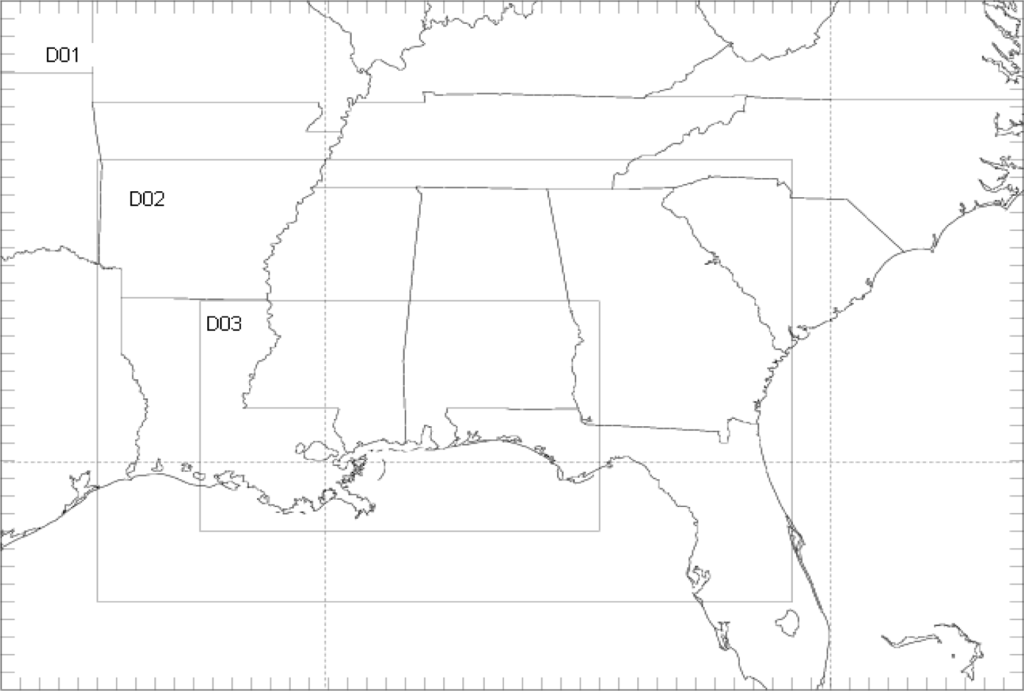 Modeling domains used in WRF