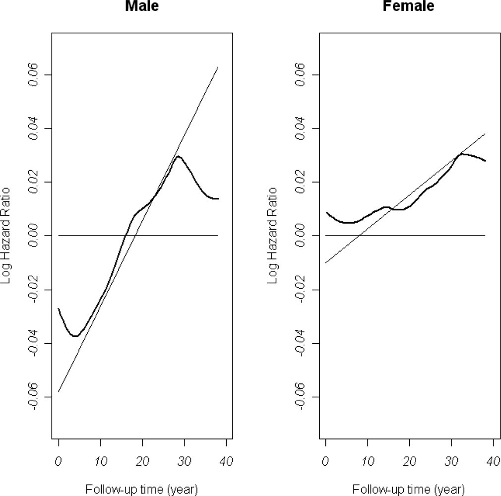 - Grambsch, PM; Therneau, TM. Proportional hazards tests and diagnostics based on weighted residuals. Biometrika 1994, 81, 515–526. [Google Scholar]