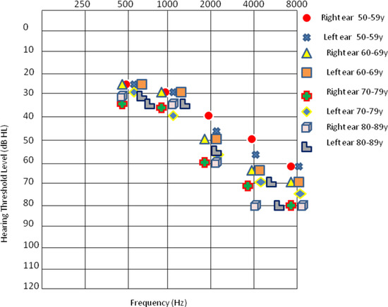 Noise-induced permanent threshold shifts (NIPTS) were computed from retrospective audiometric analyses by subtracting aging effects on hearing sensitivity in sixty-eight patients with bilateral sensorineural hearing loss who reported significant occupational noise exposure histories. There were significant effects of age on NIPTS but no [...] Read more.