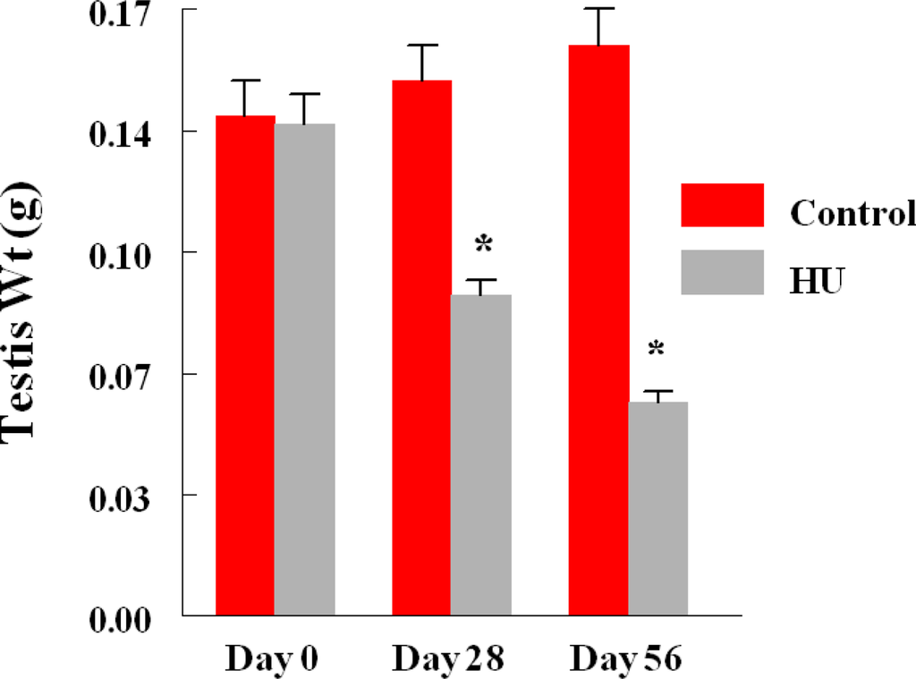 | Testis wt (g) | 0.15 ± 0.01** | 0.25 ± 0.01 |