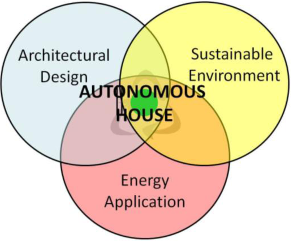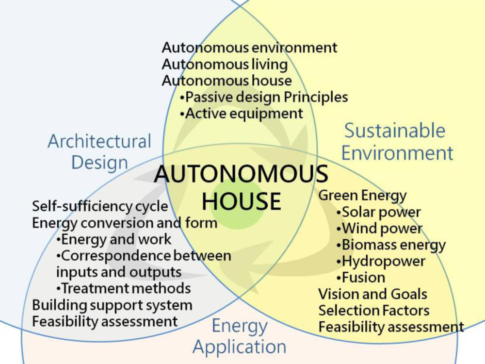 In the wake of the greenhouse effect and global energy crisis, finding sources of clean, alternative energy and developing everyday life applications have become urgent tasks. This study proposes the development of an “autonomous house” emphasizing the use of modern green energy technology to reduce environmental load, achieve energy autonomy and use energy intelligently in order to create a sustainable, comfortable living environment. The houses’ two attributes are: (1) a self-sufficient energy cycle and (2) autonomous energy control to maintain environmental comfort. The autonomous house thus combines energy-conserving, carbon emission-reducing passive design with active elements needed to maintain a comfortable environment.