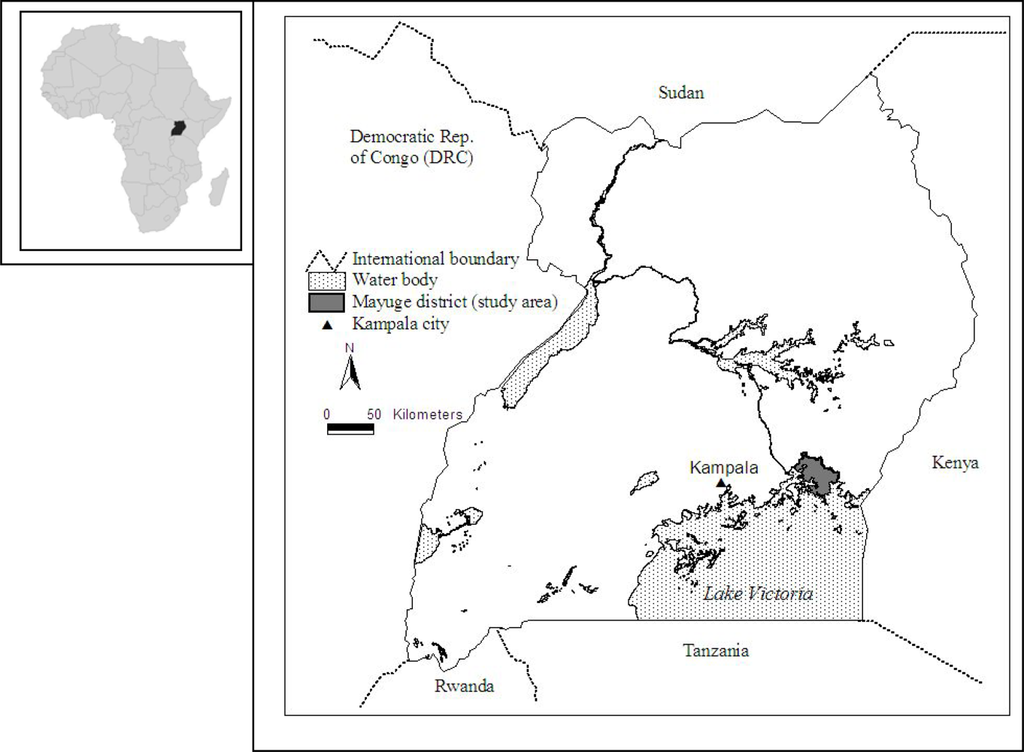 This paper reports on the results of a series of in-depth semi-structured interviews and focus group discussions conducted in Kampala city and the Mayuge district in southeastern Uganda with government officials, health experts, and local community leaders in 2006. The interviews were designed to gather information regarding participants’ perspectives on the effects of HIV/AIDS infection on household composition, labor allocation, land transactions, health expenditures, and agricultural practices in farming households and communities in Uganda. These interviews are part of a larger, multi-stage research project designed to explore relationships between sustainable agriculture, household food security, and health status in the study area [23,24]. The estimates of household expenses and labor losses and the local rules for inheritance of land and other assets following a household death that are reported in this paper will be used to expand an existing quantitative model that explores the effects of HIV/AIDS on affected households. The interviews reported here also contributed to the development of a follow-up quantitative household-and-individual survey conducted in 2007 that has provided additional data for statistical analysis, cross-validation of the results from this survey, and development of new model rules. The long-term goal of these modeling efforts is to develop a framework to explore the potential effects of various policy interventions, which should contribute to improved policies for sustainable development in the region.