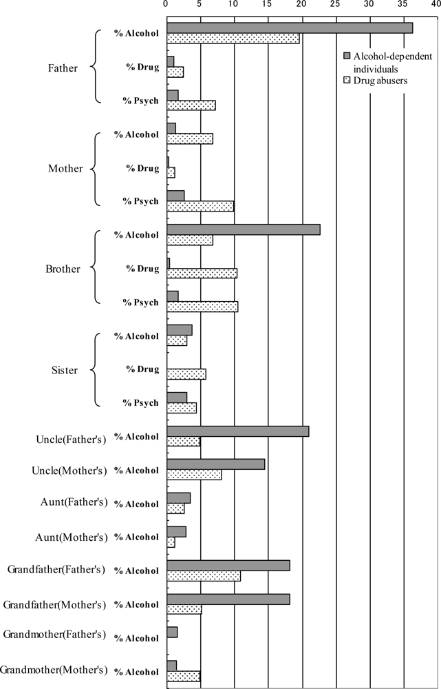 - Iwakura, N; Sera, M; Yonezawa, H; Juukuroki, H; Shingai, N. A study on the relationship between alcoholics and alcohol-related problems of the parental generation. Jpn. J. Addict. Fam 2006, 23, 55–63. [Google Scholar]