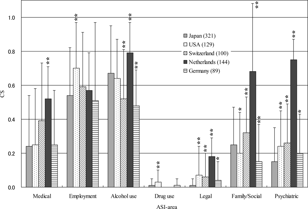 3.3.3. Comparison of CS in Japanese alcohol-dependent individuals with CS in alcohol-dependent individuals in other countries