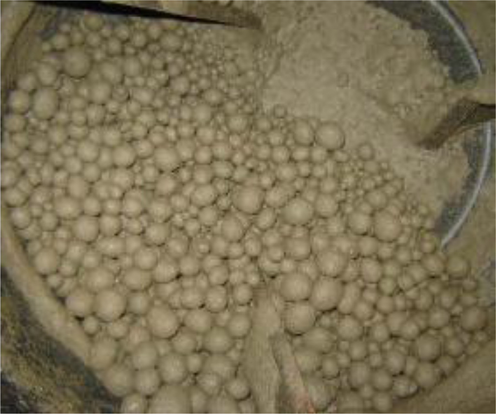 Artificial aggregate in mini concrete mixer (from Melton et al. [37] with permission of J.S. Melton).