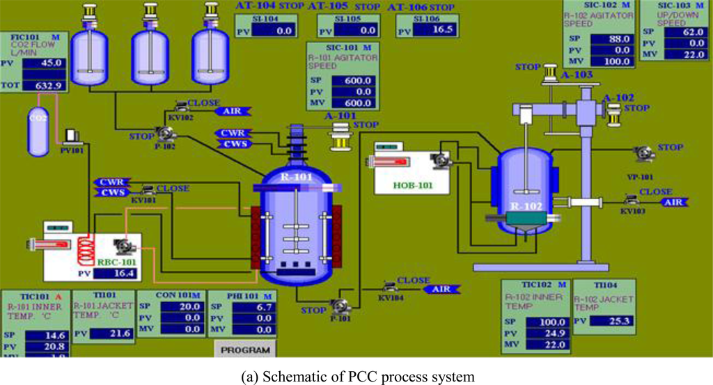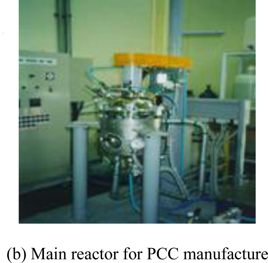 Considering the importance of PCC applications to various industries, a PCC pilot plant on a larger scale as shown in Figure 17 was established in KIGAM (South Korea, project by Dr. J.W. Ahn) in 2002. The pilot plant was designed to produce PCC of 99.9% purity and particle sizes in the range of 8−20 μm and 0.3−0.5 μm. The synthesized PCC is currently used in the study of recycled paper making. The technology could be used as leverage, allowing South Korea to participate in developing foreign limestone deposits. Southeast Asian countries such as Vietnam and the Philippines have demonstrated their interest in applying our technology for the development of their own resources [52]. PCC manufacture by the carbonation using CO2 could also contribute to the reduction of CO2, a green house gas worldwide.